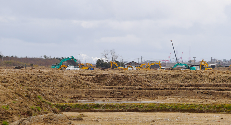 現在、田んぼの地盤整備工事が急ピッチで進められています。 しかし、すでに苗づくりの時期に入り、同時に「田おこし」や「しろかき」など田植え前の土づくりも進めなければなりません。 ところが、工事の引き渡しが間に合うかどうか、いまだ不透明で、5月・6月の田植え時期に間に合うのか、今現在も不安な毎日が続いています。 それでも希望を捨てず、今できる準備を着実に進めています。 地域に根ざした米づくりを続け、9月にはたくさんのお米を実らせたい。