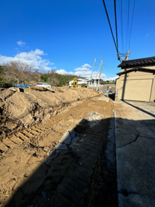 ▶︎急ピッチで地盤整備工事をしている田んぼの様子