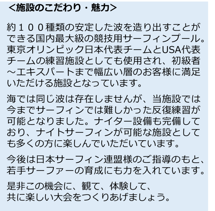 アスリートとしてサーファーがより注目されるきっかけとなるよう、大会実現に皆さんのお力添えをどうかよろしくお願い致します。