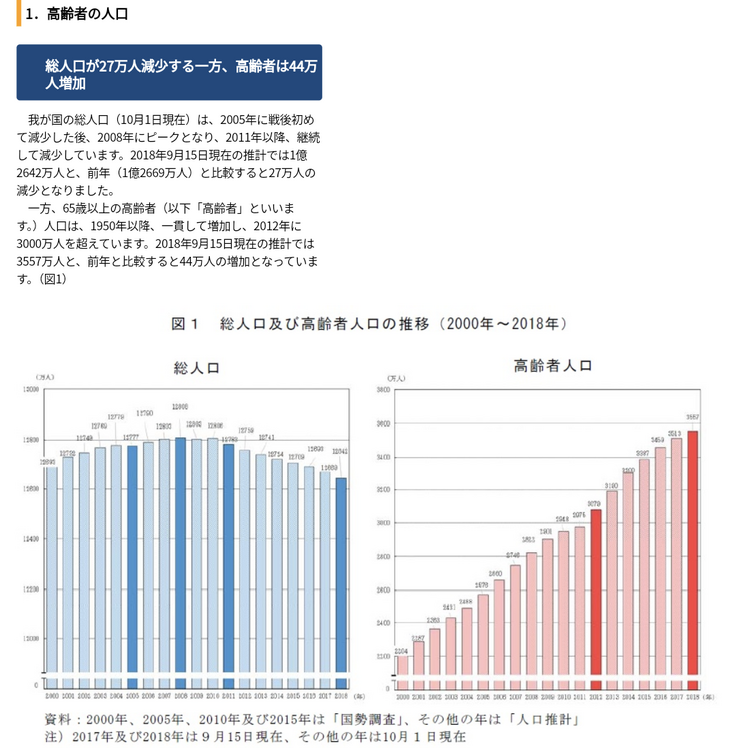 総人口は減少しているものの、高齢者は年々増加傾向だと下の推移をみてわかります。