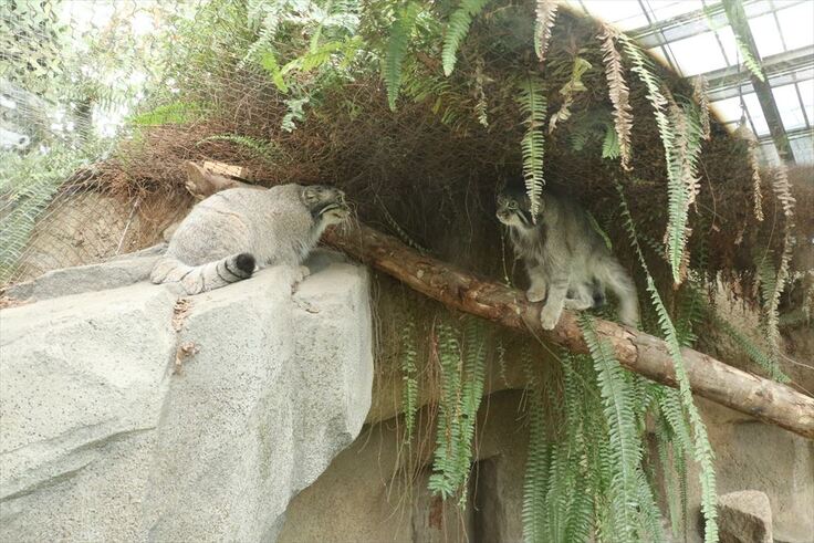 また、「ウェディングシュート」と呼ばれる通路をつくり、お互いの展示場内に自分たちの意思で安全に移動することができるようになりました。スタッフは動物たちの行動などで目視で分かりやすく確実に繁殖期を見極めることができるようになり、マヌルネコたちを安全に同室展示できるようになりました。