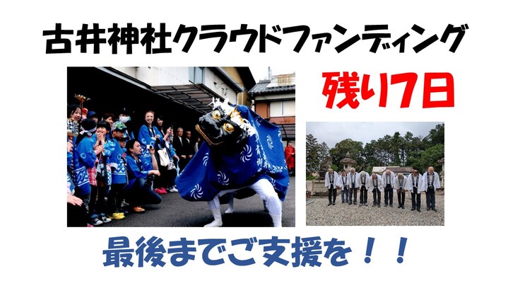 【クラウド終了まであと7日】最後まで古井神社再建への歩みにご支援を!!