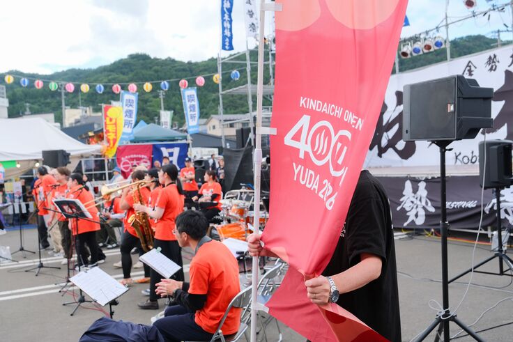 2日目のお祭り広場では、にのへJr.マーチングバンドのコーチングスタッフも務めていただいている先生方が所属する奥州市のバンド 「ビッグブレス」さんによるライブ時に開湯400年を記念してザ・ドリフターズ「いい湯だな」の演奏をいただきました!会場は熱気に包まれました!