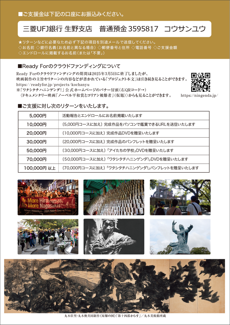 ただ、映画制作にはその倍以上制作費や上映活動費などが必要になるため、引き続き私に対する直接のご支援をお願いするためのチラシを作成しましたので、ご協力をお願いいたします。