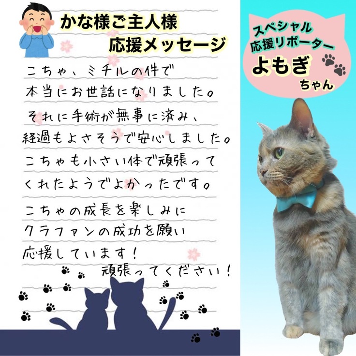 ![感謝のメール📮🐾[10,000円]](https://readyfor.jp/rails/active_storage/representations/proxy/eyJfcmFpbHMiOnsibWVzc2FnZSI6IkJBaHBBK05YRUE9PSIsImV4cCI6bnVsbCwicHVyIjoiYmxvYl9pZCJ9fQ==--73a65104eeaccfdc9782b23c9354b2df5348a906/eyJfcmFpbHMiOnsibWVzc2FnZSI6IkJBaDdDRG9MWm05eWJXRjBPZ2wzWldKd09oTnlaWE5wZW1WZmRHOWZabWxzYkZzSGFRSXNCR2tDbEFJNkNuTmhkbVZ5ZXdZNkRIRjFZV3hwZEhscGFRPT0iLCJleHAiOm51bGwsInB1ciI6InZhcmlhdGlvbiJ9fQ==--fc2618279d5c256a3dee5442678918f2b9145a45/p152603-r382558-visual.jpeg)
