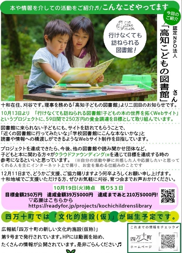 高知県は四万十町、十和地域の「とおわと育つ会通信」NO.8に、当館のクラウドファンディングへの取り組みを紹介していただきました。