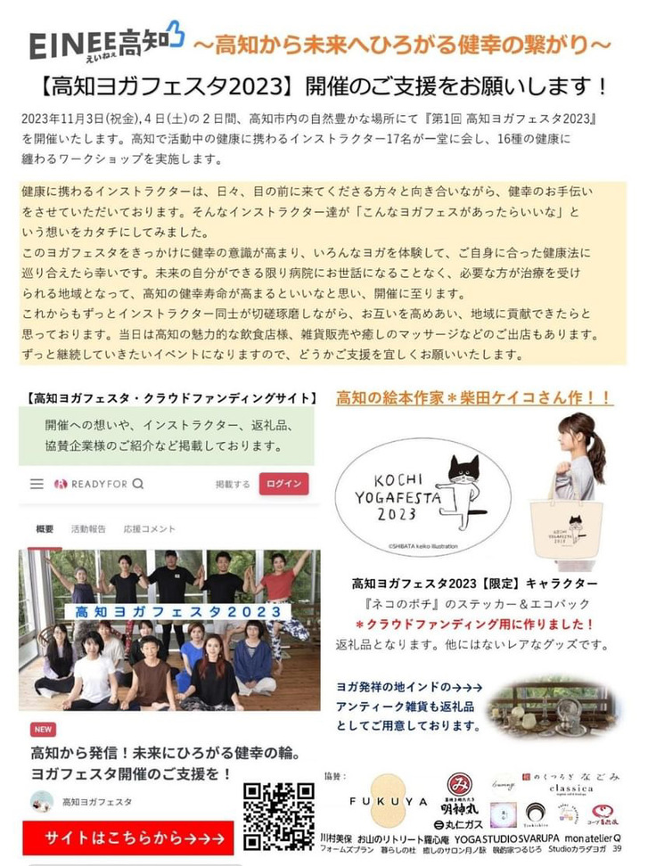 今回のヨガフェスタ2023では、未来に繋がるイベントにする為、クラウドファンディングにも挑戦中です