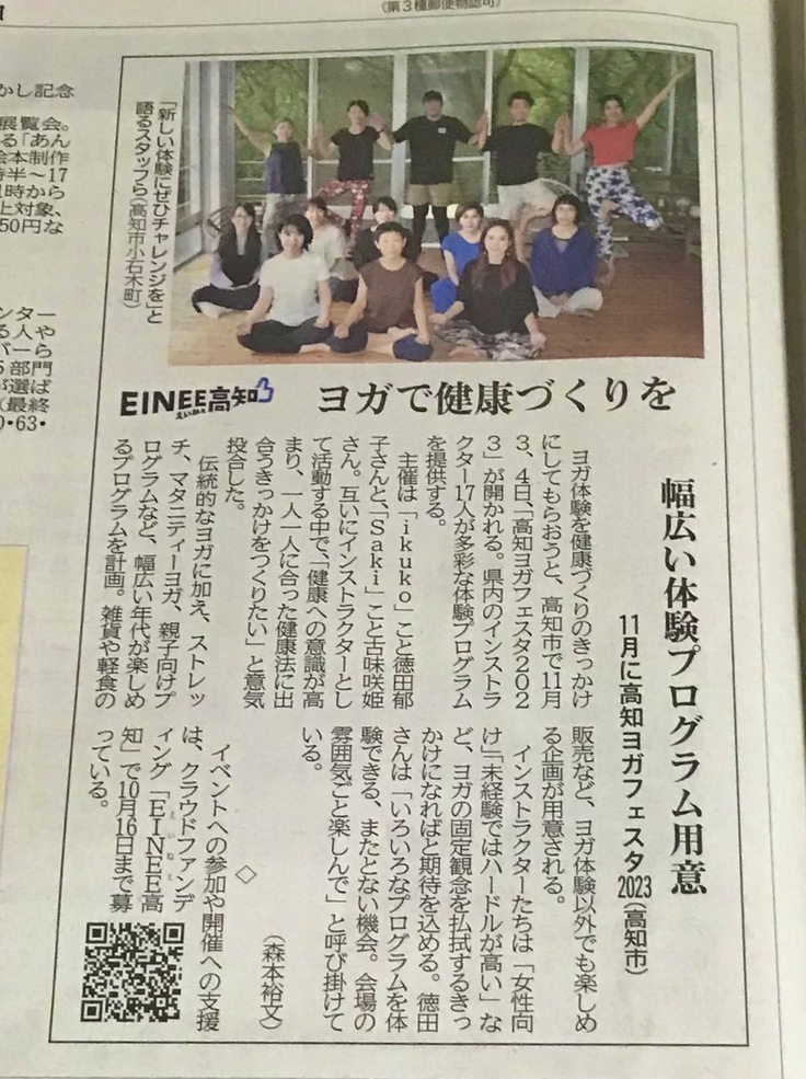 そして高知ヨガフェスタ2023のことやクラウドファンディングにチャレンジすることで高知新聞より取材をしていただきました。