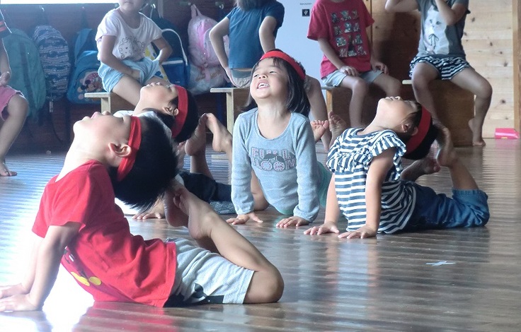 砂や水をたっぷり使った遊び、豊かな自然を生かした散歩、裏山探検など、自然を1番の教材に、五感をしっかり使った遊びを大切に保育してきました。また体づくりの一つとして、リズム遊びを取り入れています。楽しみながら、発達のやり直しにも役立ちます。