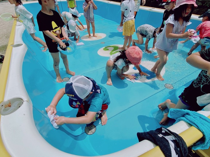 今日は年長、年中組さんがプールの大掃除をしてくれました。