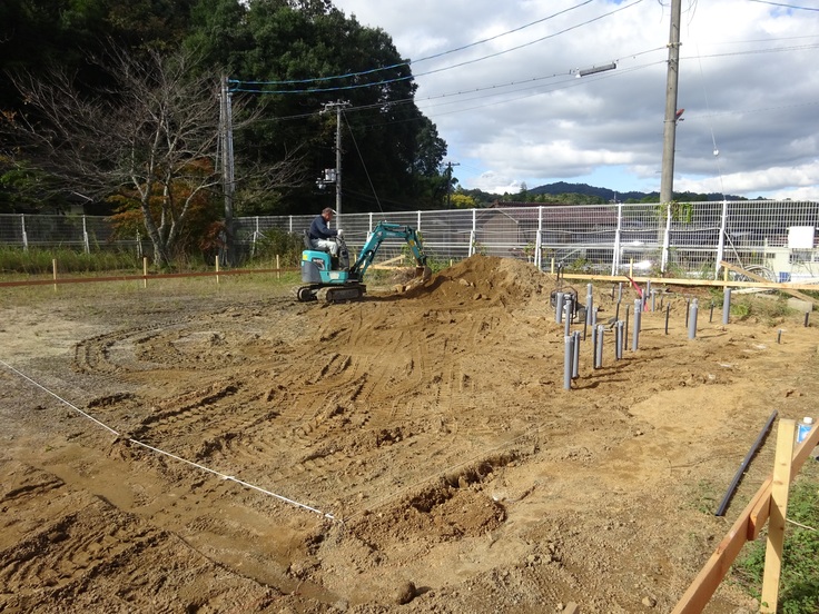 乳児棟は基礎の工事中。木で枠組みがされており、どんな風に出来上がるのかワクワクします。