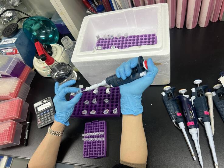 その造血幹細胞を粗精製・凍結保存し、解析を行います。