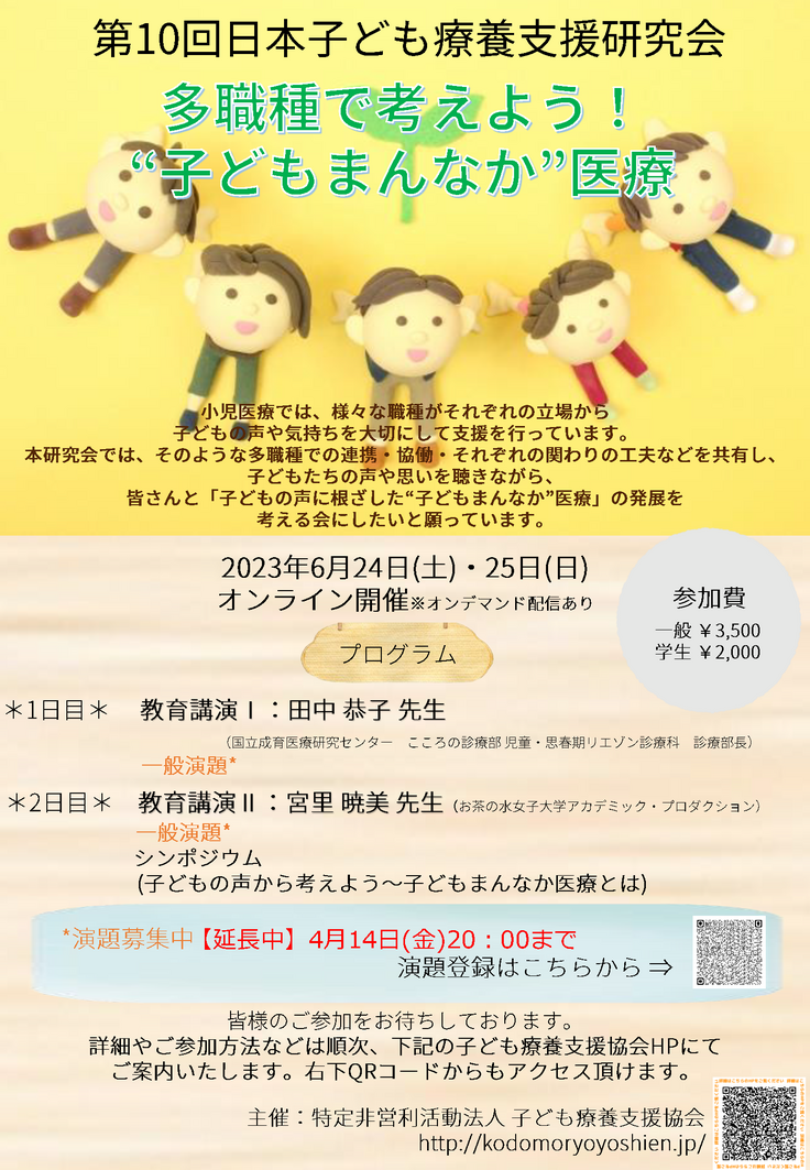 さて、本日は第10回日本子ども療養支援研究会のお知らせです。