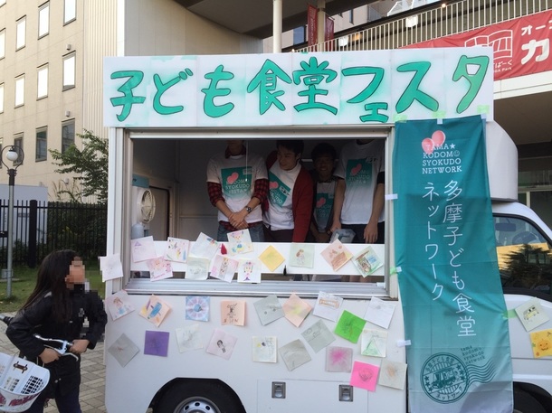 キッチンカ―には子どもたちの描いた絵を貼らせていただきました!