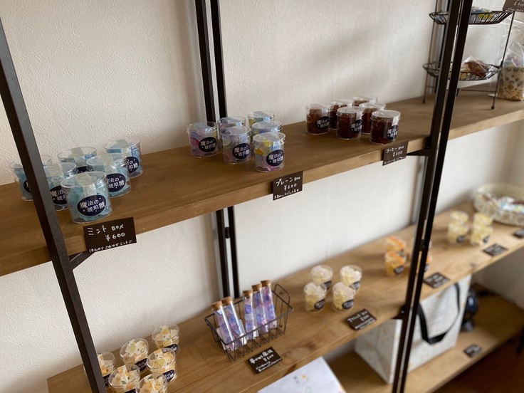 ■琥珀糖を中心に、日替わり「おやつ」も販売しています。