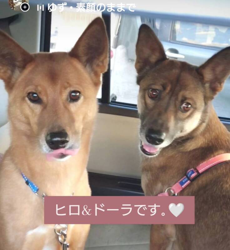 ヒロは山で2年の放浪生活をしていましたが、落ち着きと賢さがあり時々見せるビビりな姿も可愛いです。ドーラはスーパービビりですが困った顔とそっと甘えてくるところがたまらなく可愛いです。ヒロとドーラはこはくのおうちで愛情をこめて大切に育てていただきとても良い仔たち。