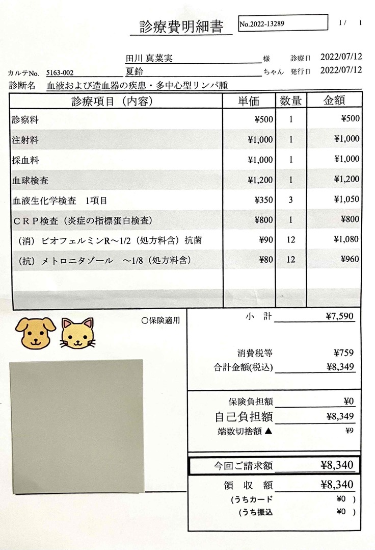 の治療費にあてさせて頂きたいと思います。