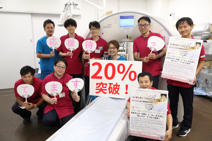 診療放射線課では一人ひとりの技師がその持てる能力を最大限に発揮すべく、多くの検査に携われるよう多能化を進めています。放射線科読影室はCT室、MRI室および救急医療室のそれぞれに隣接した配置に特徴があり、放射線科医師や他科の主治医、看護師、課事務アシスタント等が一体となって、和やかな雰囲気の中で日々業務に精励しています。