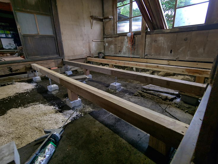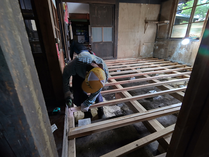 さっそく湖北会のメンバーさんとプロの大工さんのお手伝いをお借りして