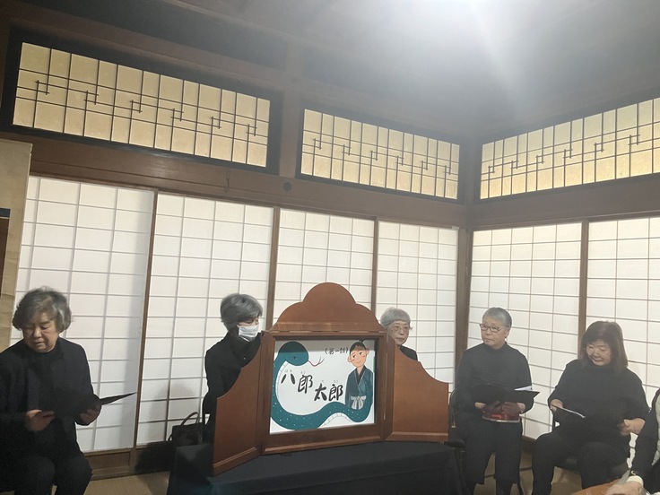 図書ボランティア「はみんぐ」による大型紙芝居「八郎太郎」は