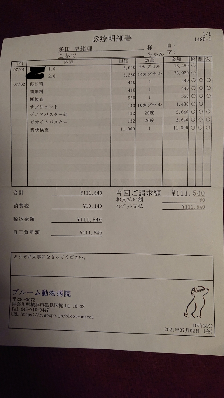 違うお薬を処方していただきうんちを詳しく検査していただくことになりました。