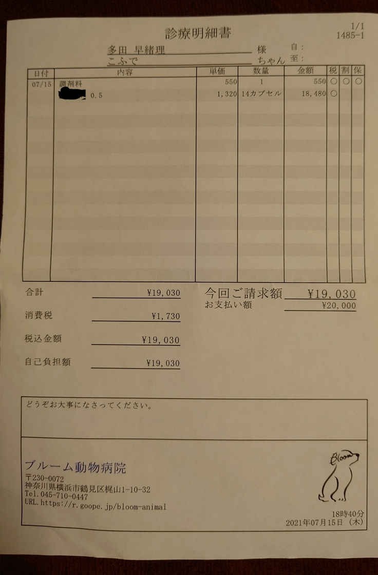 計4カプセルになってこふでくんも飲むのが大変ですが頑張ってもらいます(>_<)