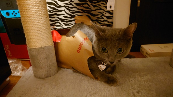写真は紙袋をびりびりにしてくれたこふでくん😂