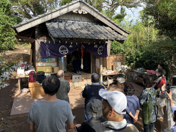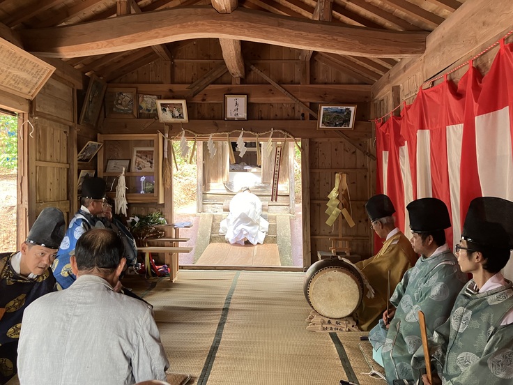 小島の杜に神楽囃子とみなさんの晴れやかな声が響いて