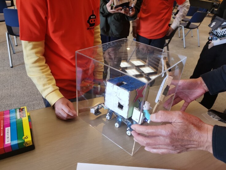 25㎝×25㎝×25㎝の透明な立方体にロボットをいれて、車検をして、、