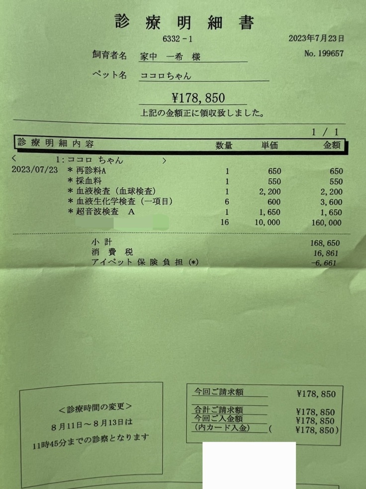 本日のは投薬治療と病院で診察がありました。投薬は朝から上手くいきました。診察は血液検査とエコーによる胸水検査をしました。どちらもかなり順調に治療できているとの事で、胸水はなくなっているそうです。後はこのまま続けていくだけだそうです。また3週間後に検診があります。その時はまた報告にあげていく予定です。