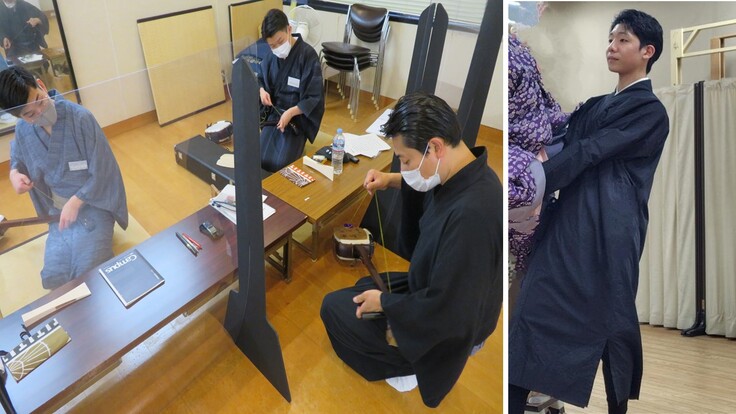 研修では、義太夫、三味線、筝曲、胡弓、狂言など、竹本の演奏者になるための技芸と基礎知識を学びます。