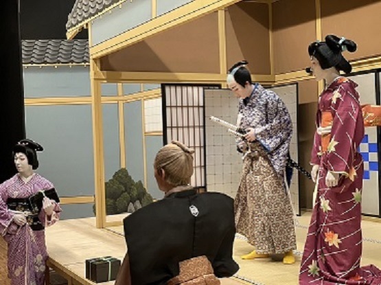 途中、仕込み中の舞台を見せていただいた歌舞伎俳優研修生。