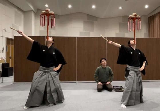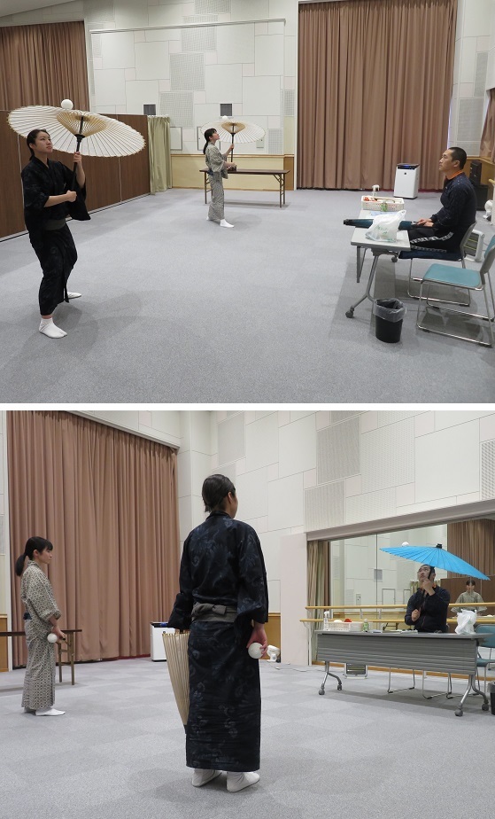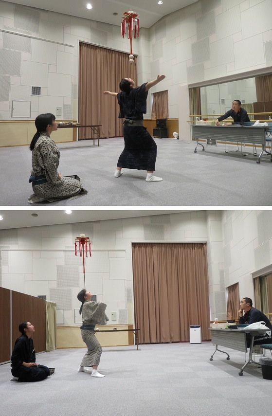 「つり糸の曲」という技を稽古している研修生は、最高難度の「回し灯籠」に挑戦しました。