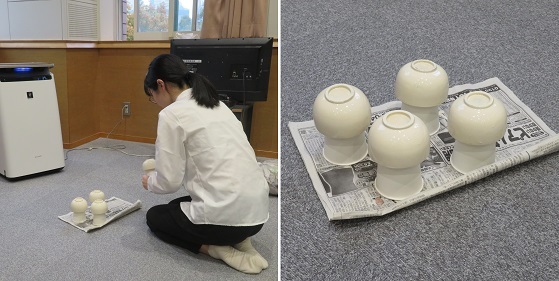 「五階茶碗」という太神楽曲芸の代表的な技で使う茶碗の塗り直しをしていました。
