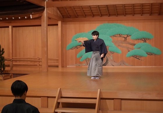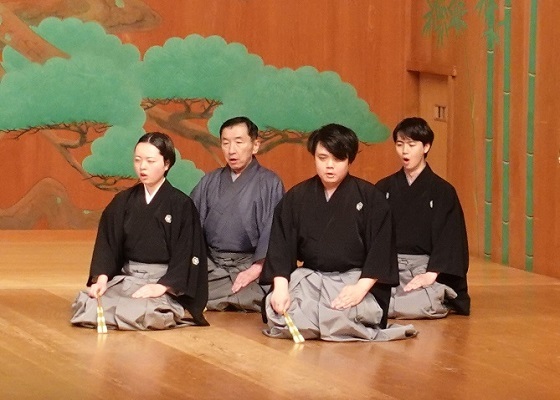 そんな3名の素謡「経正」を、ご指導いただいている山階彌右衛門(やましな・やえもん)先生が支えてくださり、無事初舞台を終えました。