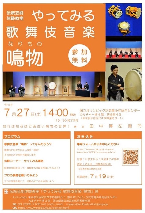 〇《7/19受付締切間近》「やってみる 鳴物」