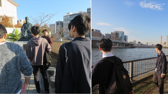 研修生は「芭蕉庵史跡展望庭園」から隅田川を眺めました。