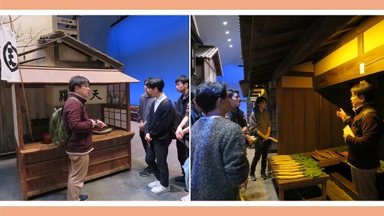 天保期の長屋が実寸大で再現されており、研修生は瀧口先生の講義で教わった長屋の構造や当時の食生活について体感していきます。