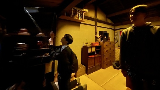 長屋には上がることができ、研修で学んでいる『双蝶々曲輪日記』「八幡の里引窓の場」で重要な意味をもつ「引窓」を実際に開け閉めしながら、江戸の暮らしぶりをより具体的に感じ取る良い機会となりました。