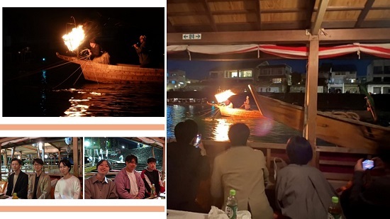 水面の鵜が篝火に映し出されて迫力満点!