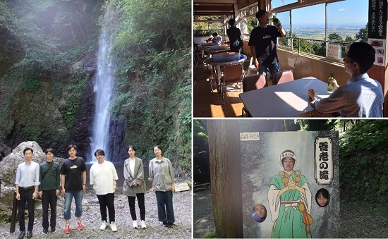 名瀑のあまりの清々しさに研修生達は感動、名水を使った養老サイダーを飲んでちょっぴり若返ったかのようでした。