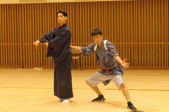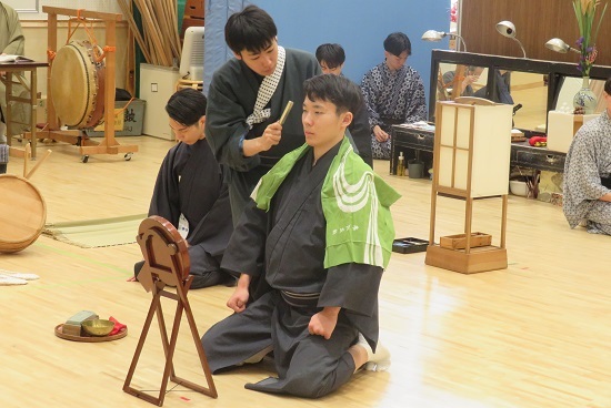 日本舞踊・立廻り・歌舞伎「双蝶々曲輪日記」引窓の発表を行う歌舞伎俳優研修生、太神楽曲芸・寄席囃子・祭囃子の発表を行う太神楽研修生たちは、本番に向けて稽古に励んできました。