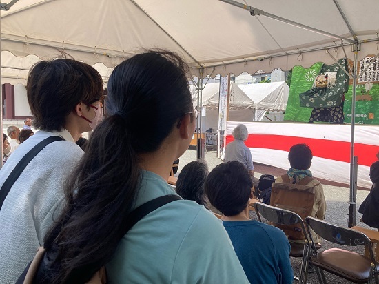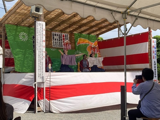 奉納演芸の特設舞台には、今年3月に研修を修了した、第8期大衆芸能(太神楽)研修修了者の翁家丸果(おきなや・まるか)さん、翁家日和(おきなや・ひより)さんの姿も。