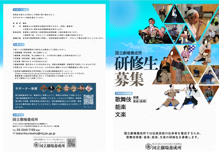 応募に関するお問い合わせやご相談は随時受け付けております。サポーターの皆様のお知り合いに、伝統芸能にご関心を持つ方がいらっしゃいましたら、ぜひ当養成所についてお伝えいただけましたら幸いです。
