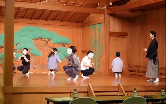 8月1日には、国立能楽堂にて能楽(三役)プレ研修を行いました。10月からの研修生募集に先立ち、能楽研修に興味を持つ皆さんにお稽古の体験を受けていただきました。