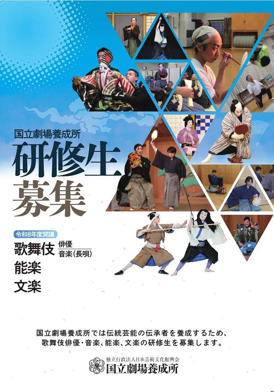 10月1日(水)より、歌舞伎俳優研修、歌舞伎音楽(長唄)研修、能楽(三役)研修、文楽研修において、研修生の応募受付を開始いたします。