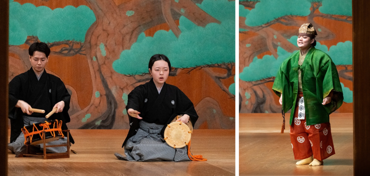 今回は、ワキ方の渡部さん、笛方の鈴木さん、狂言方の木村さんの3人が、能「高砂」で共演。