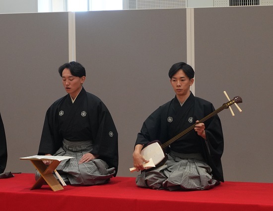 歌舞伎俳優研修では、歌舞伎の上演に欠かせない長唄や鳴物といった歌舞伎音楽も基礎から学びます。第29期生は、講師の方々から教えていただいたことを大切に、それぞれ唄と三味線に懸命に取り組んでいました。