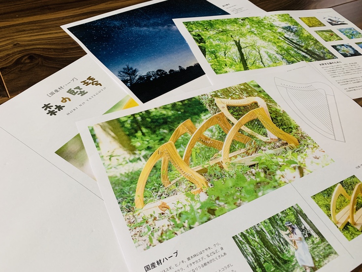 この度は「国産材ハープのパンフレットを作り、森の再生に貢献したい」