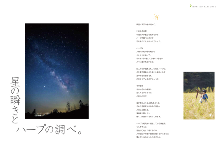 私の長々とした国産材ハープの説明文を、分かりやすいように写真やポエムなどを入れつつ再構成くださいました♪
